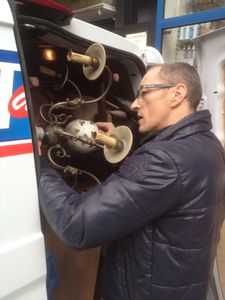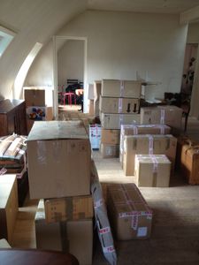 Un petit 6 m3 afin de stocker chez les parents d’Eric ce que nous n’avons pas jeté ou vendu et ce que nous emmenons à Marrakech. Le volume était calculé au plus juste. Seul le lustre de la grand-mère d’Eric qui a engagé de nombreuses discussions entre nous tant je le trouve laid, a posé un problème!